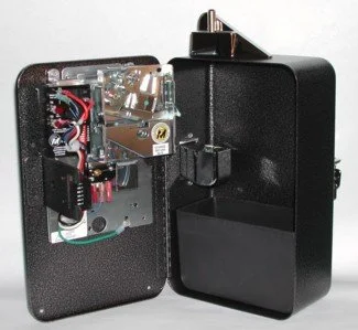 Coin Light Meter Timer is a completely self-contained, locking coin collection system. Made of heavy duty 16 gauge cold rolled steel, this coin box includes it's own coin mechanism, cashbox and solid state timer. Standard Features Include: