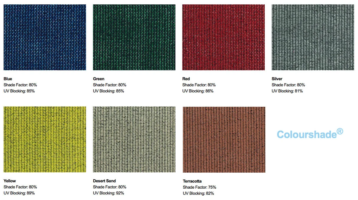 Colourshade® FR (fire-rated) fabrics carry a comprehensive manufacturer’s warranty from the date of installation against failure from significant fading, deterioration, breakdown, mildew, outdoor heat, cold, or discoloration.