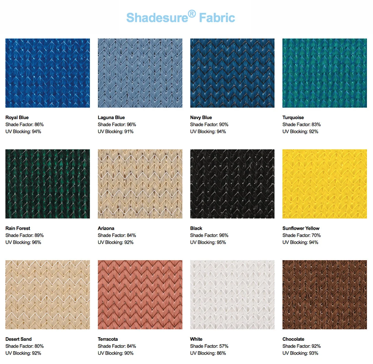 Shadesure® fabrics carry a comprehensive manufacturer’s warranty from the date of installation against failure from significant fading, deterioration, breakdown, mildew, outdoor heat, cold, or discoloration.