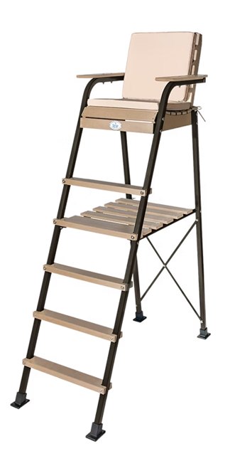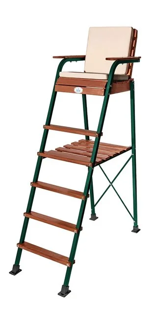 The Premier Tennis Umpire Chair is carefully crafted for years of use and enjoyment and will make an impactful statement indoors or out. This 6’ (1.83m) sitting height model was designed to meet the official specifications for tournament use around the world (ITF, WTA, ATP, ITA, USTA). A stunning addition to any court!. Colors: Green and Bronze. Available Umbrella Kit and All-Weather Chair Cover.