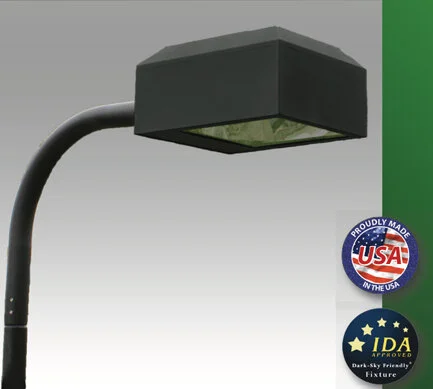 The lamp in oriented vertically for maximum efficiency and life. The optical system meets full cutoff requirements.